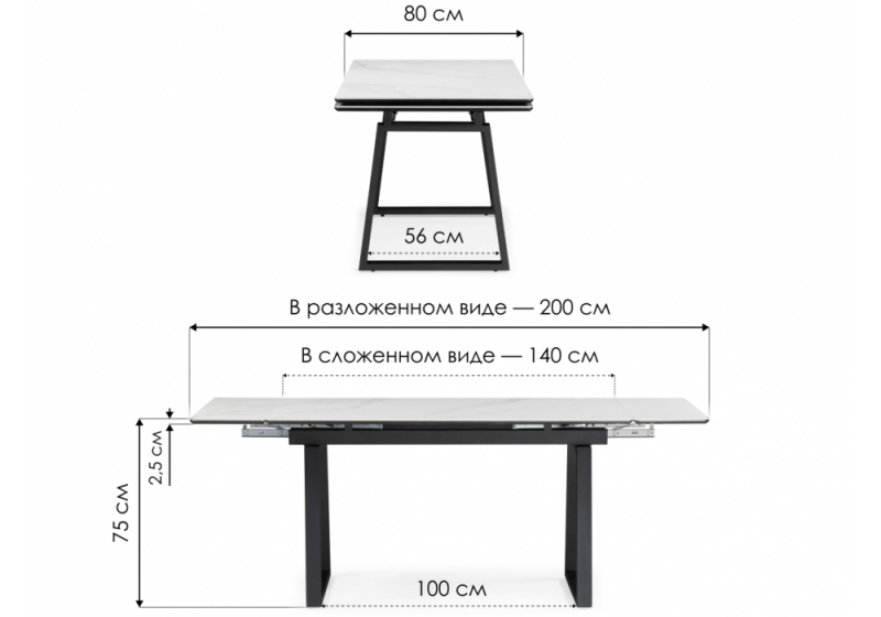 Керамический стол Джек 140(200)х80 серый мрамор larka grey / черный (80x75)