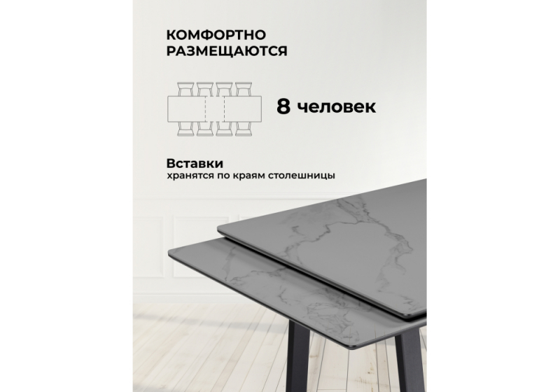 Керамический стол Джек 140(200)х80 серый мрамор larka grey / черный (80x75).