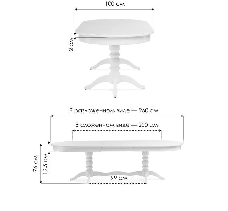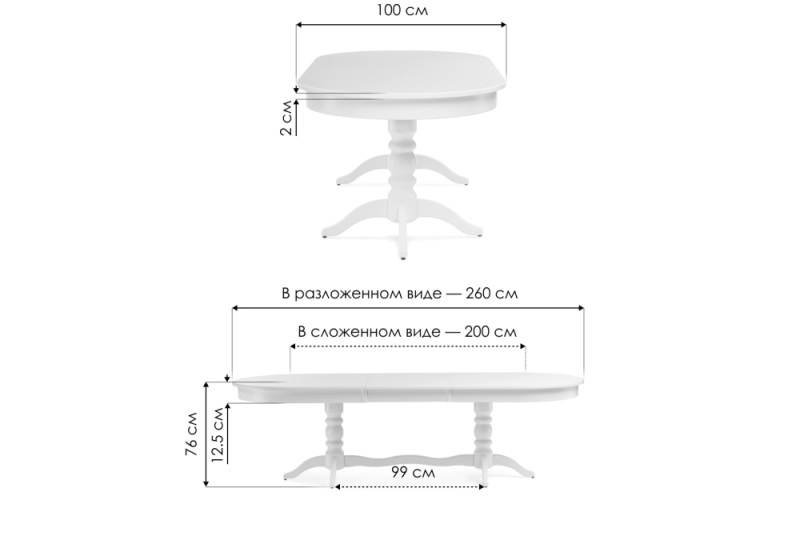 Длина стола в разложенном виде: 260 см.