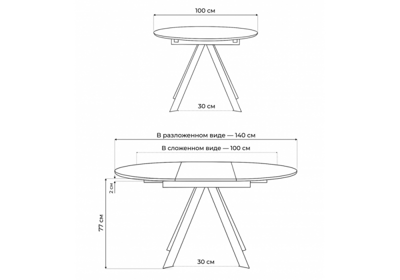 Расстояние между ножками: 30 х 30 см. Толщина столешницы: 2 см.