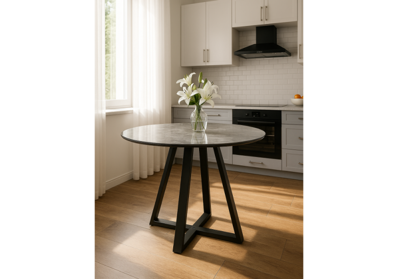 Стол стеклянный Норфолк 100 серый мрамор / черный (100x78)
